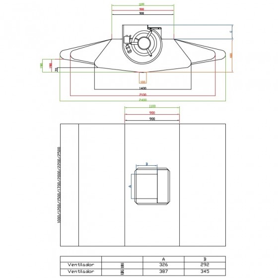 ALTEX Campana central con motor 120x140 cm