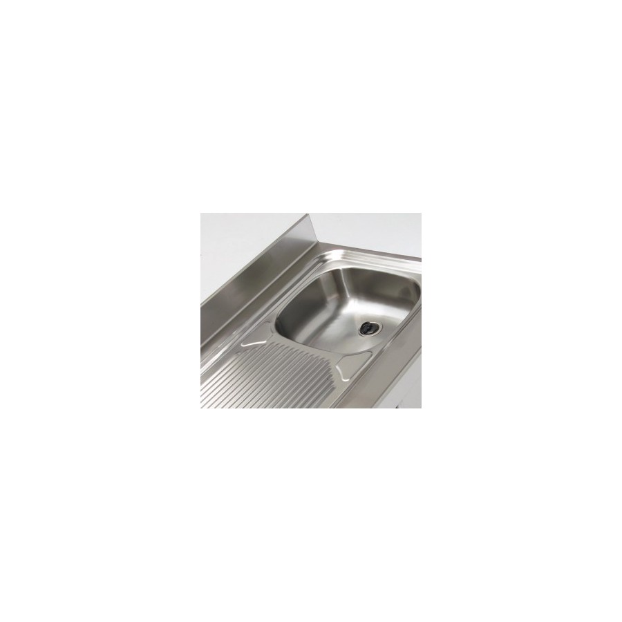 - Encimera en acero inoxidable AISI-304 18/10 acabado satinado, con canto delantero curvo y peto trasero sanitario de 100 mm.