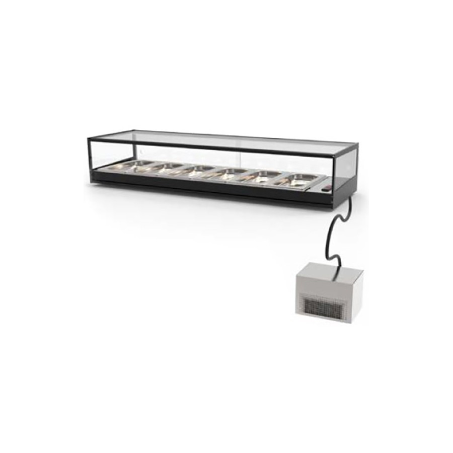 Vitrina sobre mostrador cristal recto con grupo remoto y cuba plana