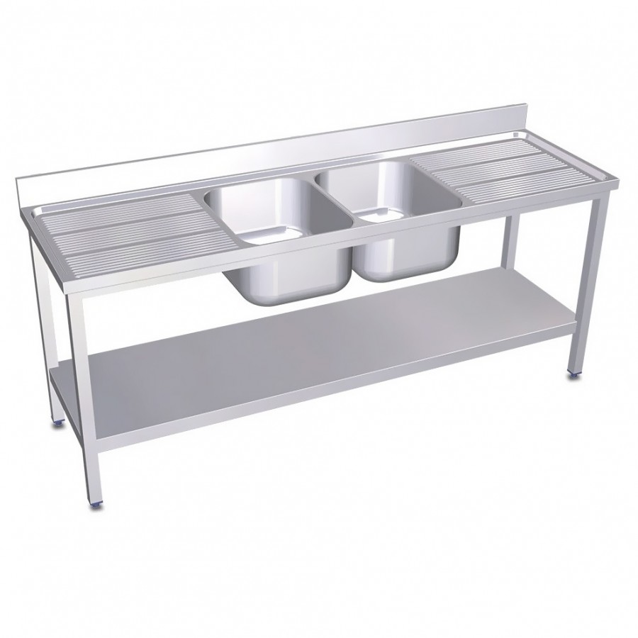Fregadero dos cubas con estante inferior